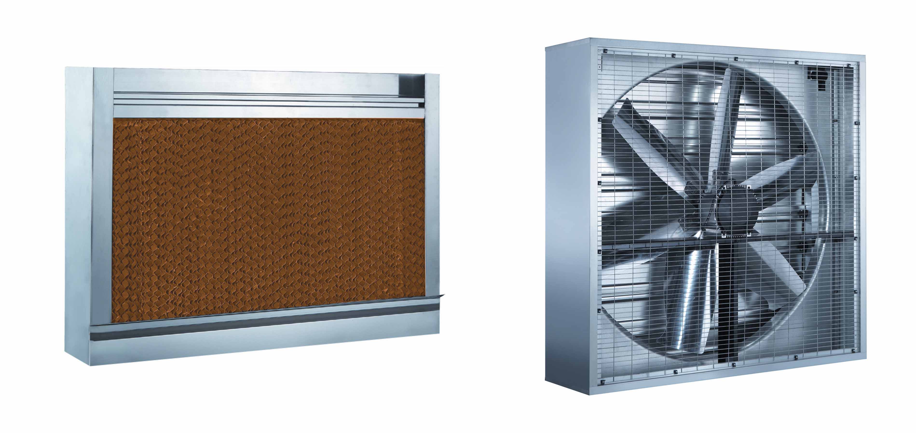 3.水簾降溫:水簾的原理是用大功率的風(fēng)機(jī)把外面的風(fēng)吹過濕簾,通過水蒸發(fā)吸熱來降溫的,優(yōu)點(diǎn)就是適合大面積降溫。缺點(diǎn)是,大面積降溫要的風(fēng)機(jī)功率很大,一般要上十幾個(gè)千瓦,離風(fēng)機(jī)比較遠(yuǎn)的地方降溫效果很差;